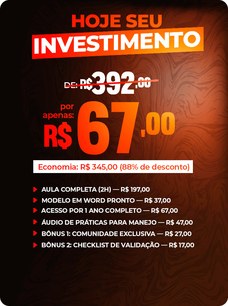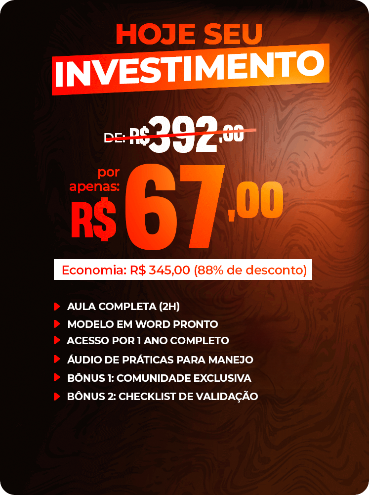 🔥 ATENÇÃO: OFERTA ESPECIAL DE NOVEMBRO! Acesso por 1 ano completo + Modelo pronto em Word + 3 Bônus Exclusivos De R$ 392,00 por apenas R$ 67,00